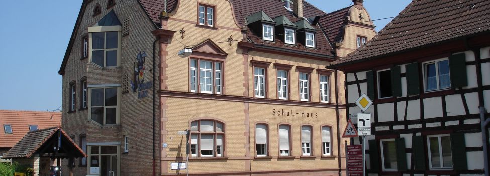 Bis auf die beiden Treppenhäuser blieben die Außenfassaden im wesentlichen erhalten. Zwei Jahre später wurde östlich des hinteren Treppenhauses noch der dringend notwendige Fahrstuhl installiert. Als Kunst am Bau wurden nach eingehenden Beratungen an der Westfassade als Ottersheimer Ortssymbol zwei in Majolika gefertigten Bären und die Initialen des Gemeindewappens angebracht. Bekanntermaßen tragen die Ottersheimer Einwohner im Volksmund mindestens seit Mitte des 19. Jahrhunderts den Ortsnecknamen „Bären“.